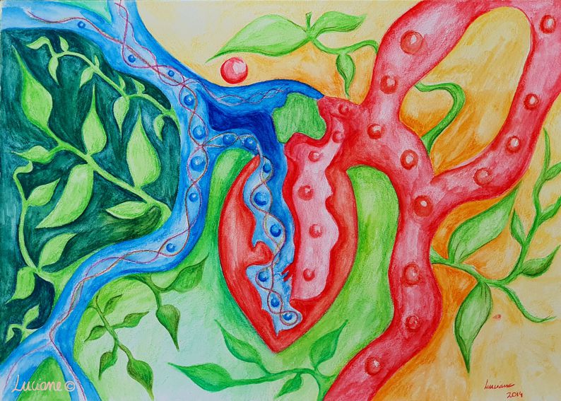 Respiração, coração, pulmão, expansão. O sangue percorre células, circula, abre caminhos e provoca movimentos. É fluxo e energia, dança nas entrelinhas, jogo contínuo de sombras e de luzes.